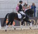 Der dunkelbraune Prämienhengst Cyber E WE (v. Calido-G-Colano, Z.u.Bes. Hildegard Ellers, Emstek) mit Tanja Fischer im Sattel erreichte mit der WN 7,9 den siebten Platz im Finale.