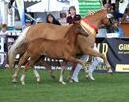FOTO: St.Pr./El.St. Goldene Deern mit ihrer Tochter, der späteren St.Pr.St. Goldika WE auf dem Weser-Ems-Fohlenchampionat 2015 (M. Oellrich-Overesch)