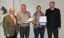 FOTO: Geehrt mit der Verbandsplakette wurden Hans Huster-Klatte und Emma Ellers, die durch ihre Tochter Hildegard Ellers vertreten wurde, eingerahmt vom Bezirksvorsitzenden Manfred Weilage (r.) und dem 1. Vorsitzenden des Pferdestammbuchs Weser-Ems Egon Wichmann (l.) (M. Oellrich-Overesch)